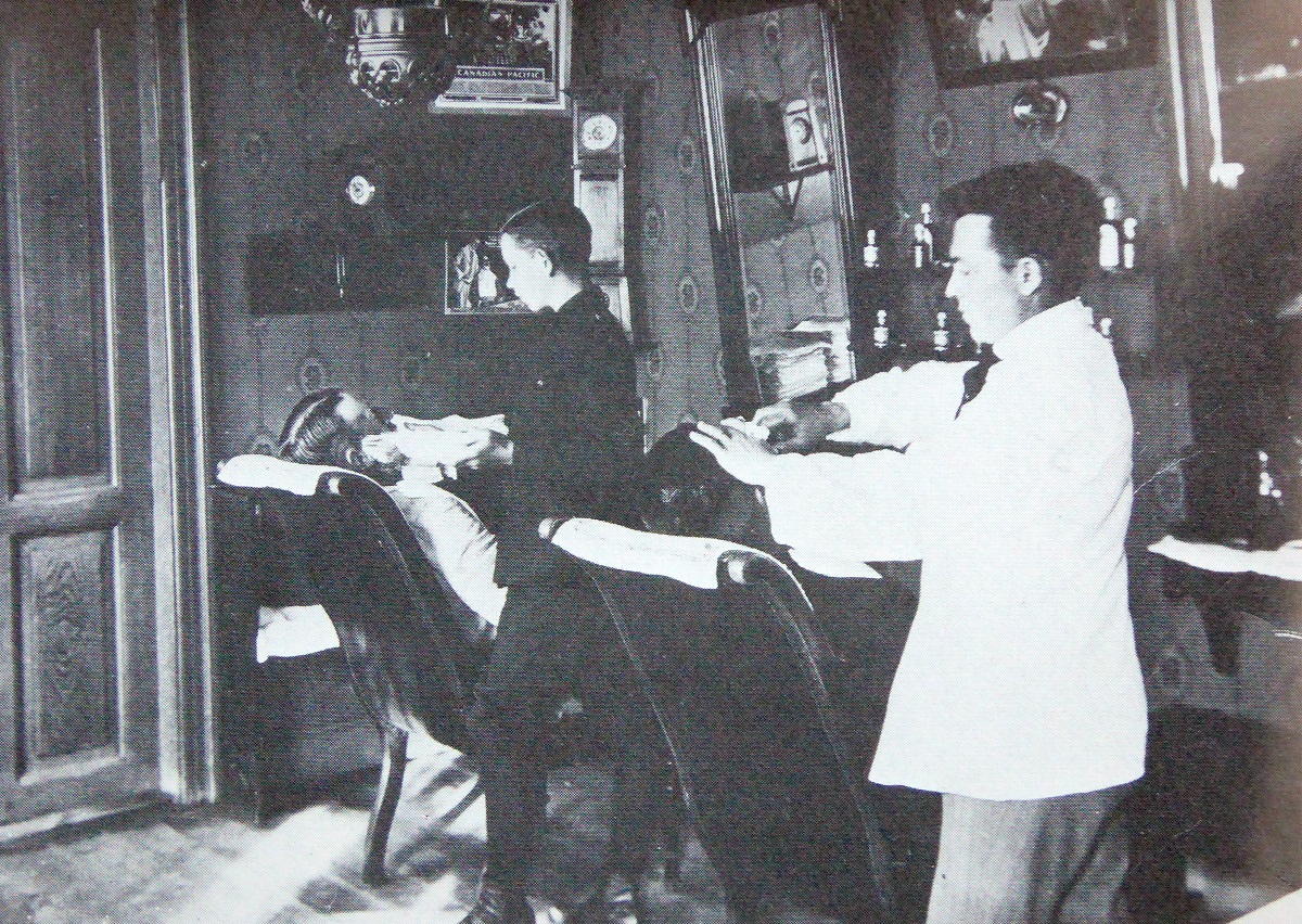 Laurids Lauridsen barber- og frisørsalon i 1919 (Hovedgaden 514), nedrevet i 1968. (Lokalhistorisk Arkiv)