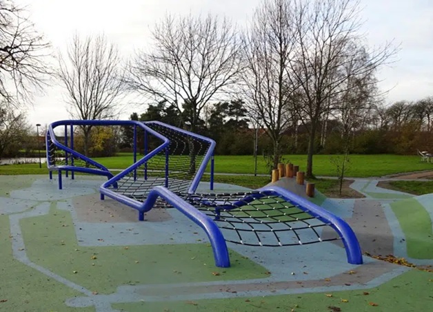 På Den Blå Plads i Engvadsgårdsparken finder du et spændende aktivitetsrum for både børn og voksne. Her kan du prøve kræfter med himmelnettet, som er et stort blåt klatrenet som både udfordre din fysik og som samtidigt opfordre til ophold og samvær.