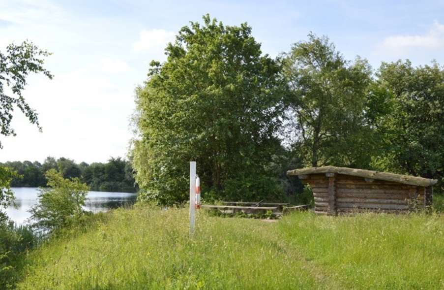 Ved den store sø i Hakkemosen ligger dette skønne shelter med bålplads, hvor du kan tilberede din mad over bål og overnatte i det fri.